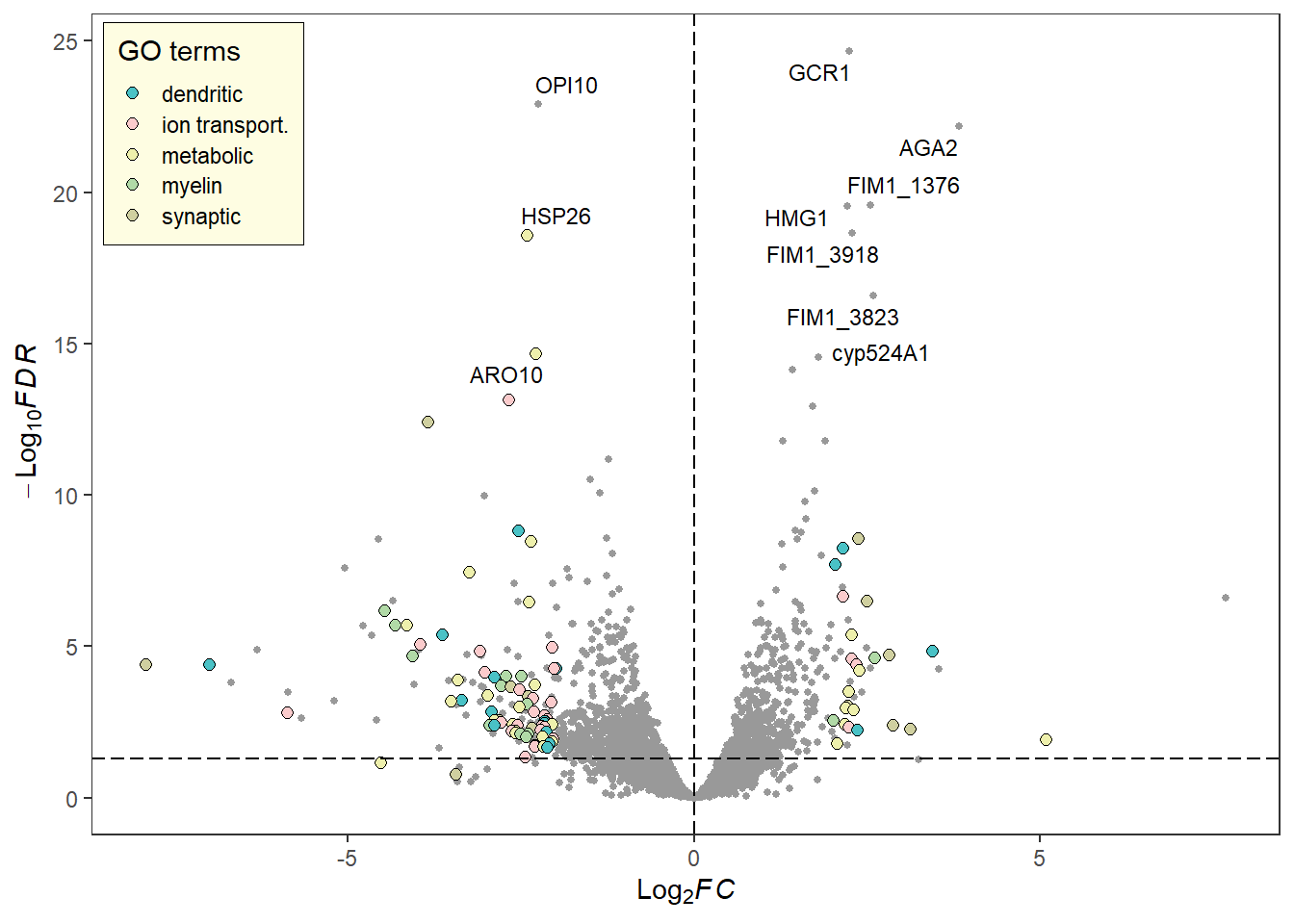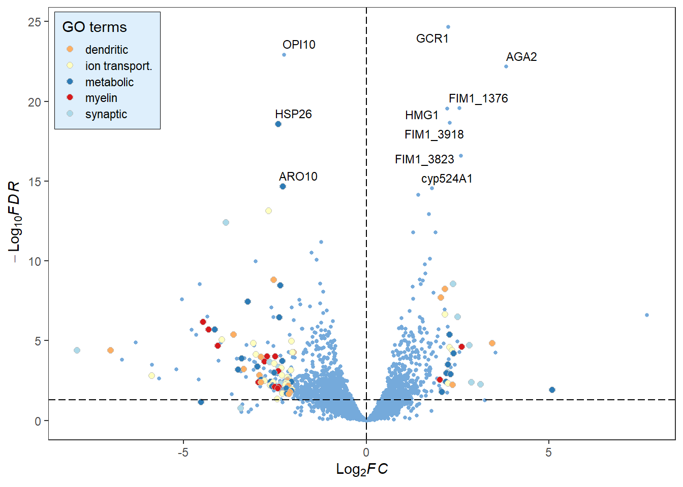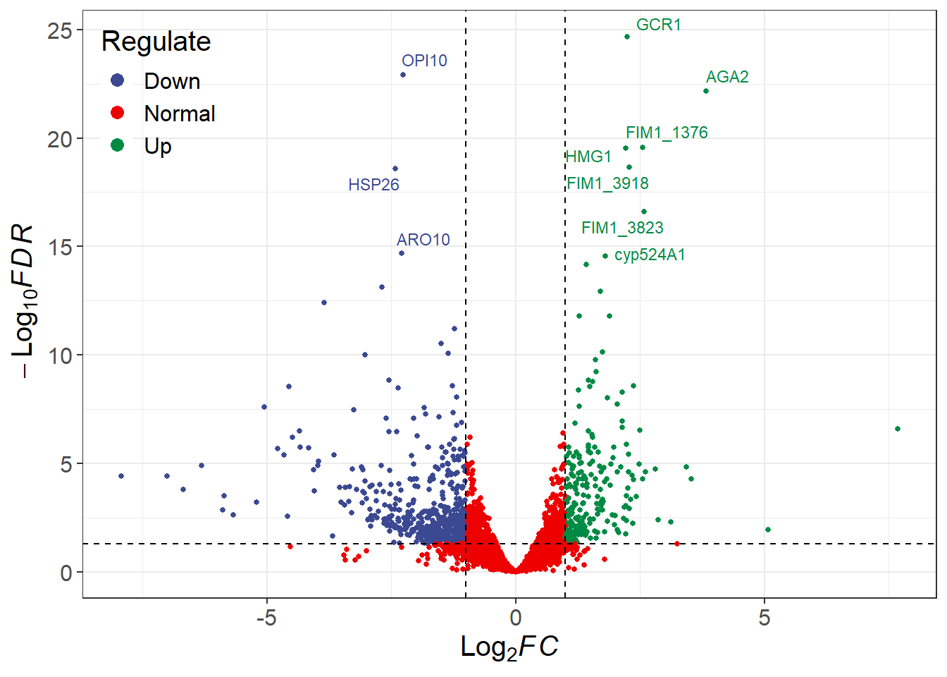 fdr_name = "padj", log2FC = 1, fdr = 0.05